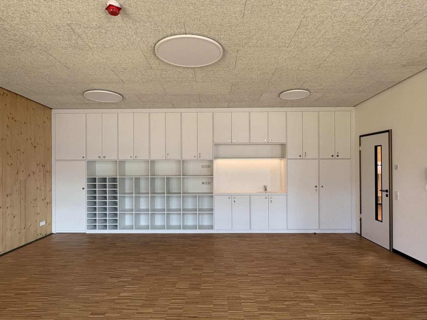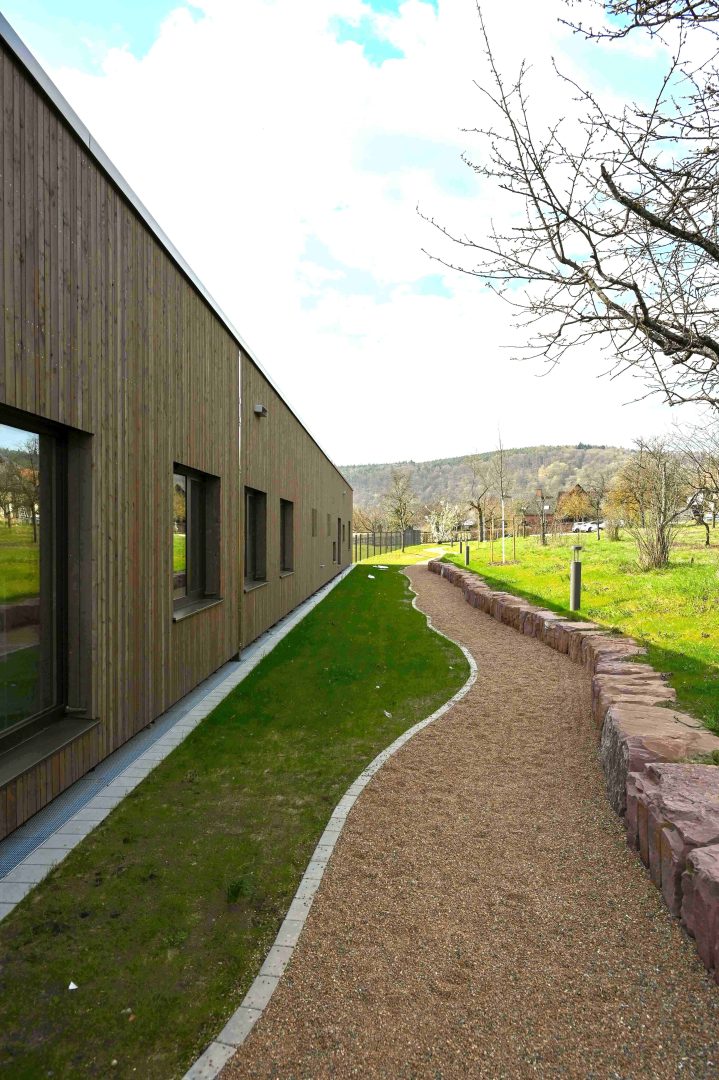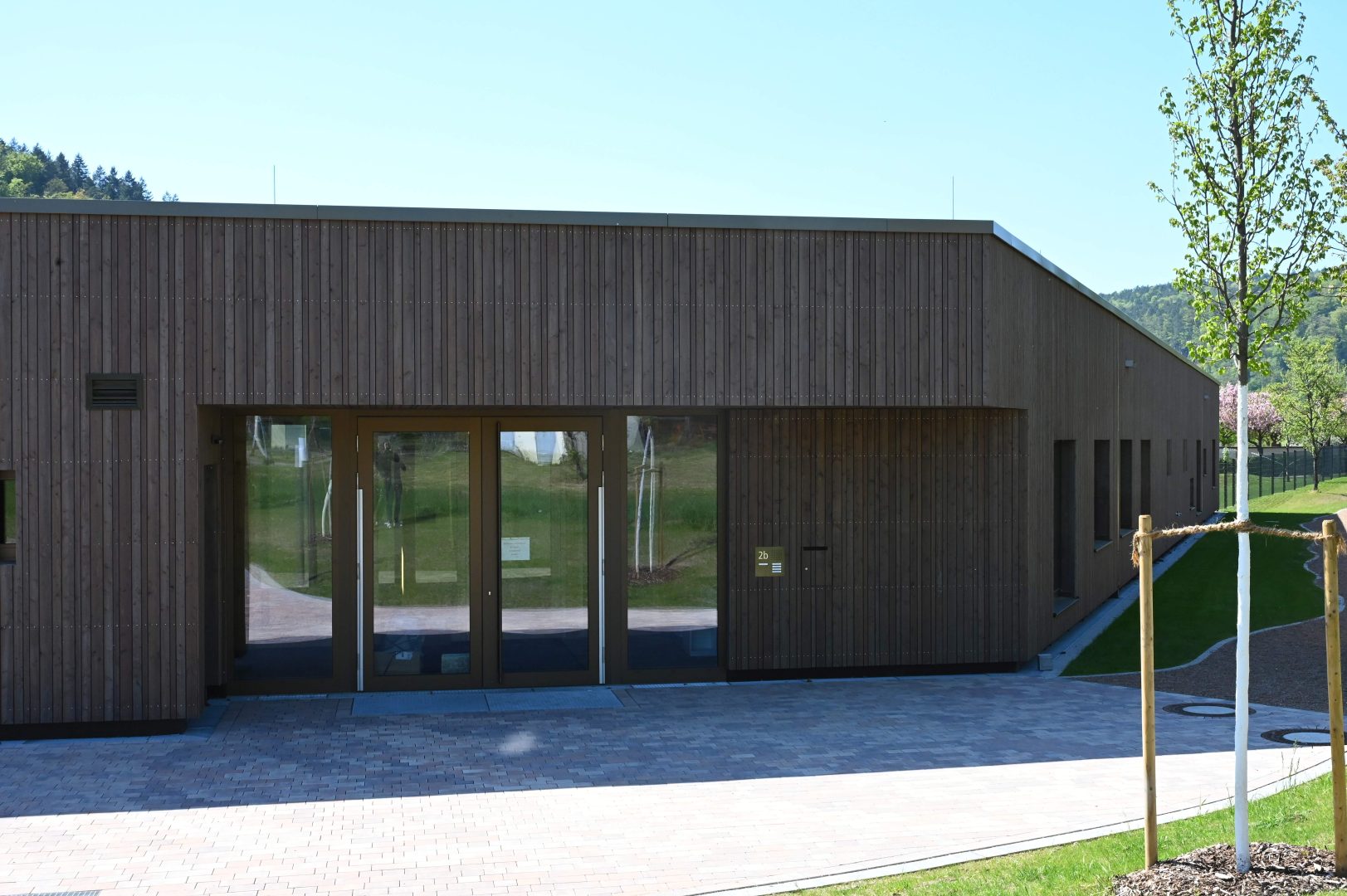Die neue Kindertagesstätte folgt der Idee eines zentralen gemeinschaftlich genutzten Mehrzweckbereichs, der als Verbindungsglied zwischen den Jahrgangsstufen fungiert. Durch die Linearität des Baukörpers entsteht jederzeit eine Blickbeziehung und somit ein Übergang zwischen Innen und Außen, Mensch und Natur. Demnach ist das Gebäude aus der grundlegenden Struktur einer L-Form entstanden, der sich um den mittig angeordneten Erschließungskern asymmetrisch knickt und schließlich zwei Flügel aufspannt. So entstand die Gliederung in drei Bereich, die sich im Innenraum aneinanderreihen: Kindergarten – Verwaltung – Kinderkrippe. Die städtebauliche Form erinnert entfernt an einen Boomerang.